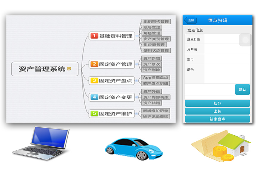 资产管理系统实现了资产全生命周期的管理,从资产的日常台账登记,到资产的变更、维修、调拨、报废,整个过程进行详尽的管理,可以通过综合查询对资产所有变动情况进行查询和数据导出,并通过系统严格、规范的管理流程提高资产的利用率,避免了资源的浪费。系统采用先进的条码和二维码技术和智能手机对资产进行管理,通过微信应用程序进行资产的盘点,极大的提高了资产盘点的效率,并且解决了以往资产管理不规范、工作量大等问题,有效提高了企业的资产管理水平。