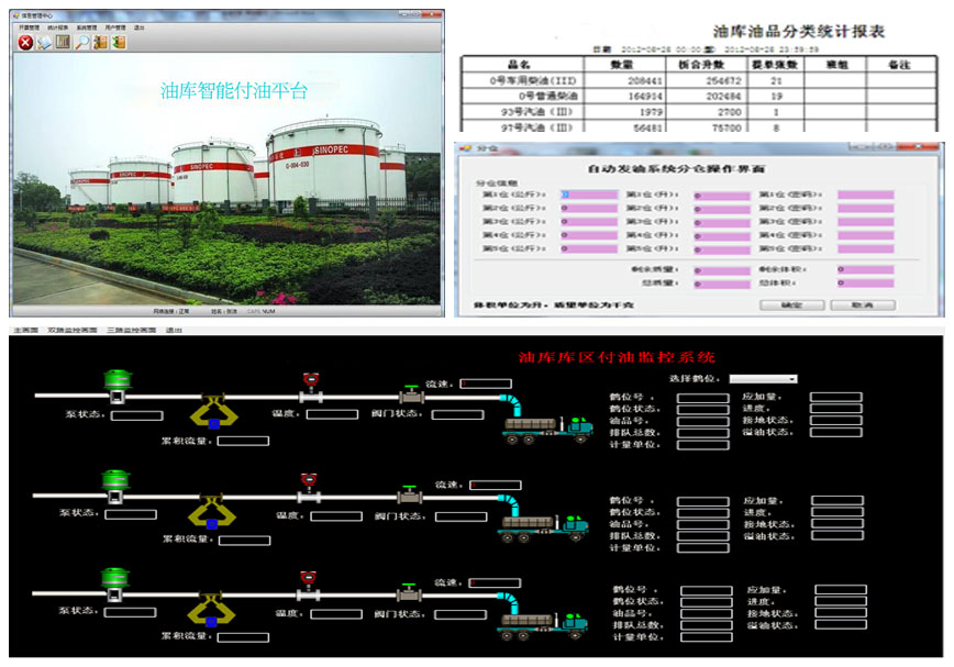 油库智能付油平台主要用途是将大量需要人工操作的工作,简化为智能化自动完成付油提油过程,提油人员到达油库通过本平台进行刷卡,自动完成提油后续操作,油库管理人员通过本平台对整个提油过程进行数字化监控,可以自动生成所需要的日报表、月报表、年报表等功能。主要包括:发油卡管理、ERP数据管理、发油监控、门禁管理、综合查询等功能。目前在中石油、中海油等多个油库使用。